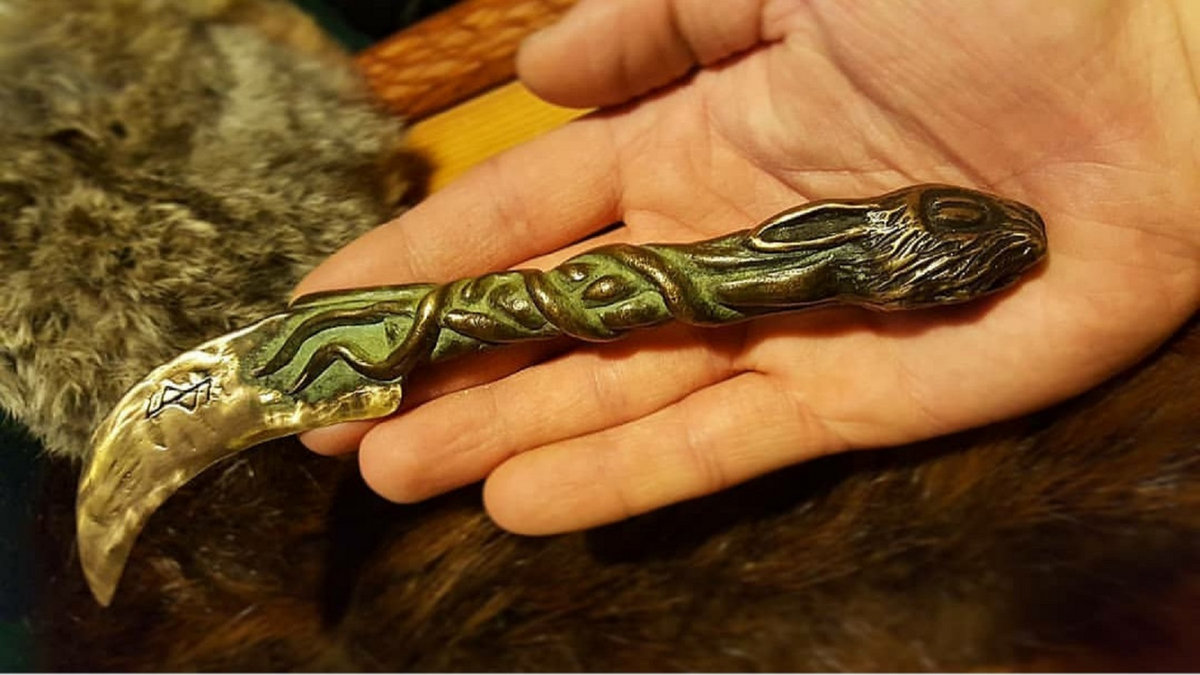 Herbalist's Athamé with rabbit's head pommel, cast in bronze. Very much inspired by the occult writings: Arcanum Bestiarum by Robert Fitzgerals & Veneficium by Daniel Schulke.
